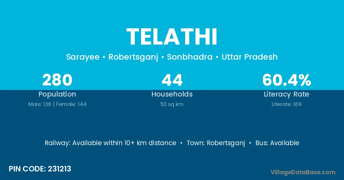 Robertsganj is the nearest town to Telathi village for major economic activities