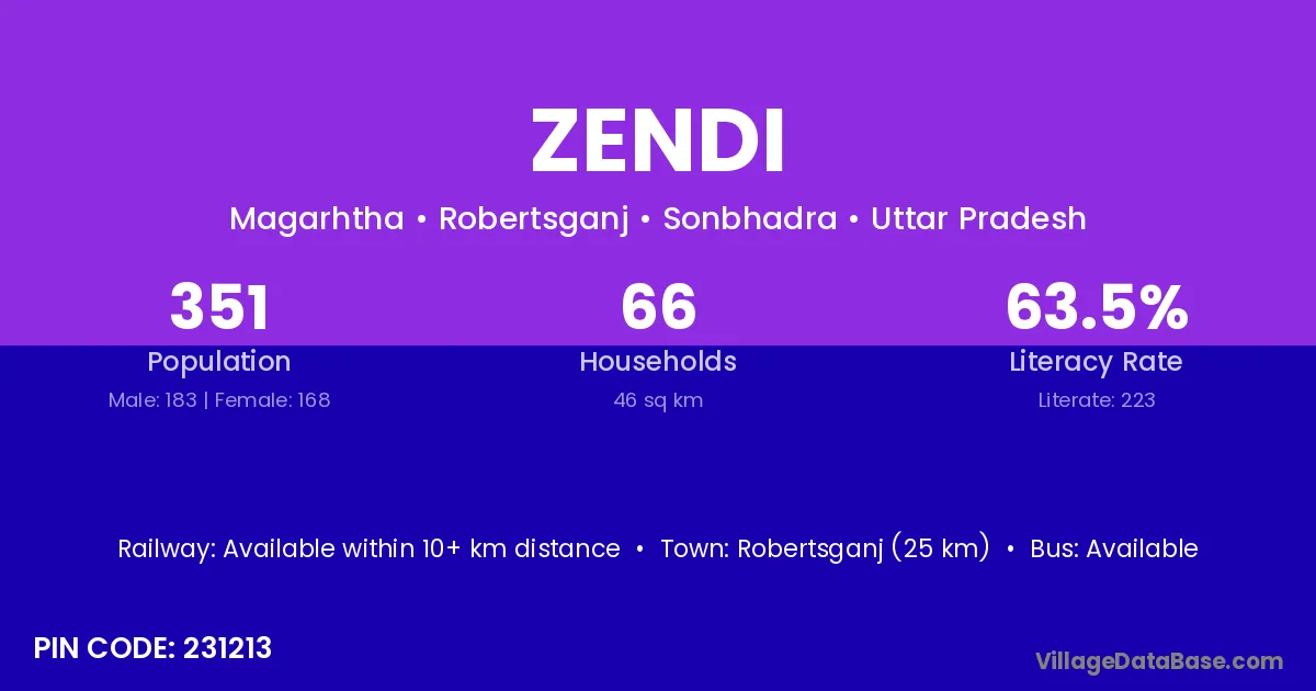 Robertsganj (25 km) is the nearest town to Zendi village for major economic activities and is located approximately 25 km away.