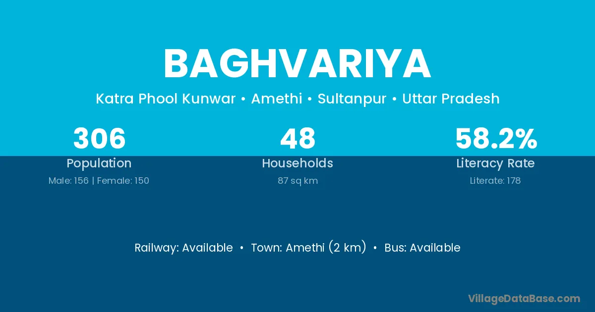 Amethi (2 km) is the nearest town to Baghvariya village for major economic activities and is located approximately 2 km away.