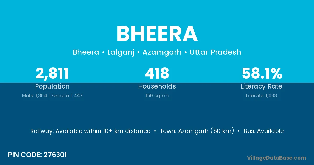 The literacy rate of Bheera village is 54.31%. Male literacy stands at 67.92% and female literacy at 42.86%.