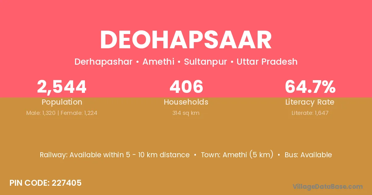 Amethi (5 km) is the nearest town to Deohapsaar village for major economic activities and is located approximately 5 km away.