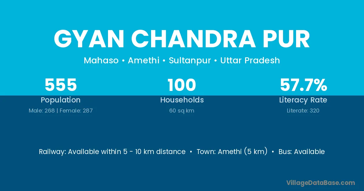 Amethi (5 km) is the nearest town to Gyan Chandra Pur village for major economic activities and is located approximately 5 km away.