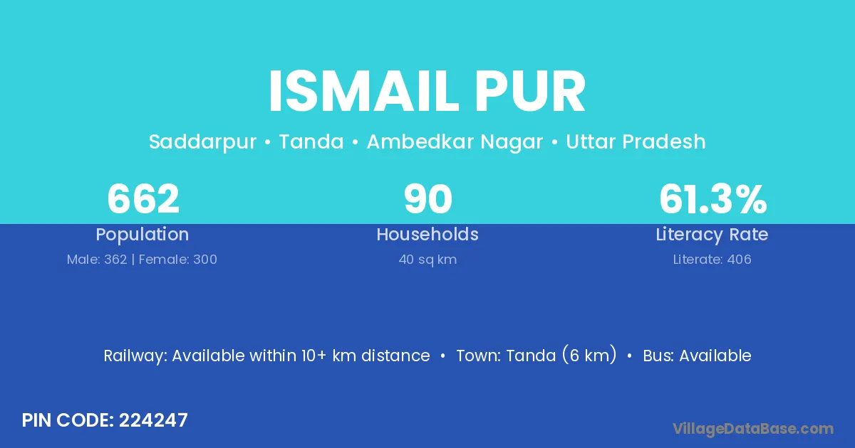 Sultanpur (22 km) is the nearest town to Ismail Pur village for major economic activities and is located approximately 22 km away.