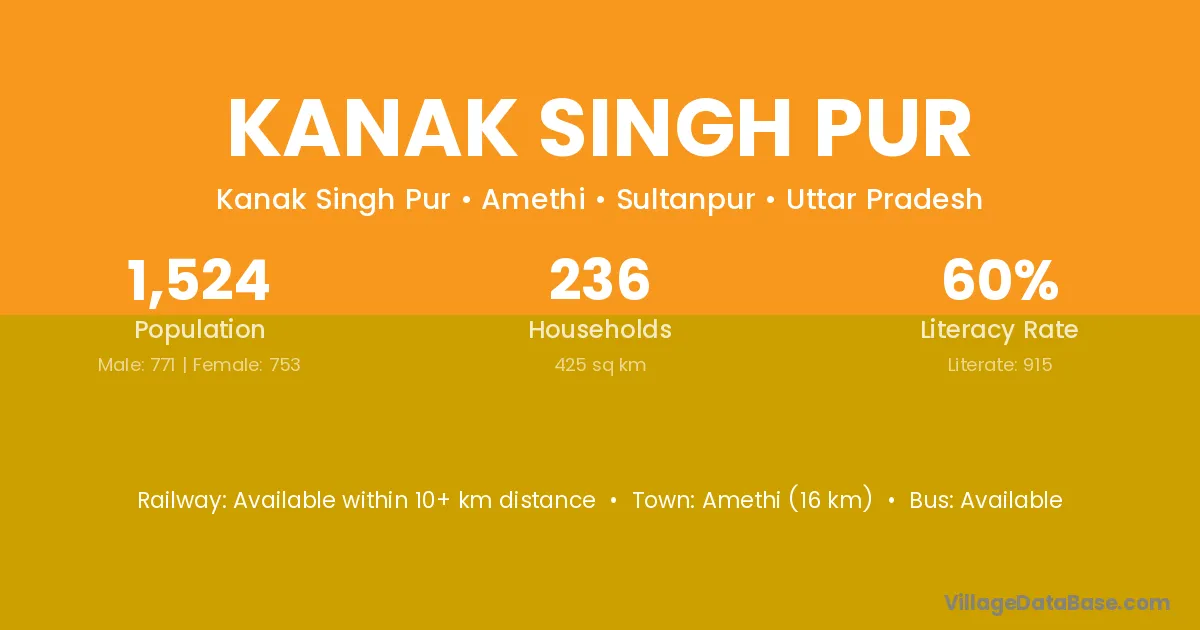Amethi (16 km) is the nearest town to Kanak Singh Pur village for major economic activities and is located approximately 16 km away.