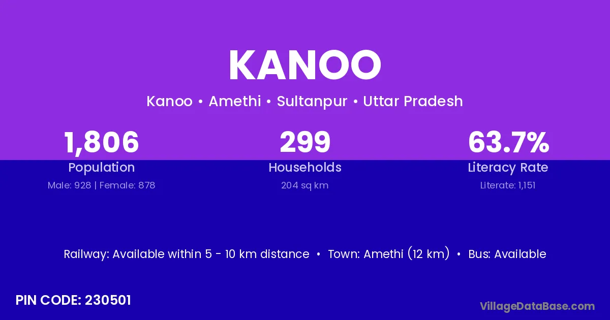 Amethi (12 km) is the nearest town to Kanoo village for major economic activities and is located approximately 12 km away.