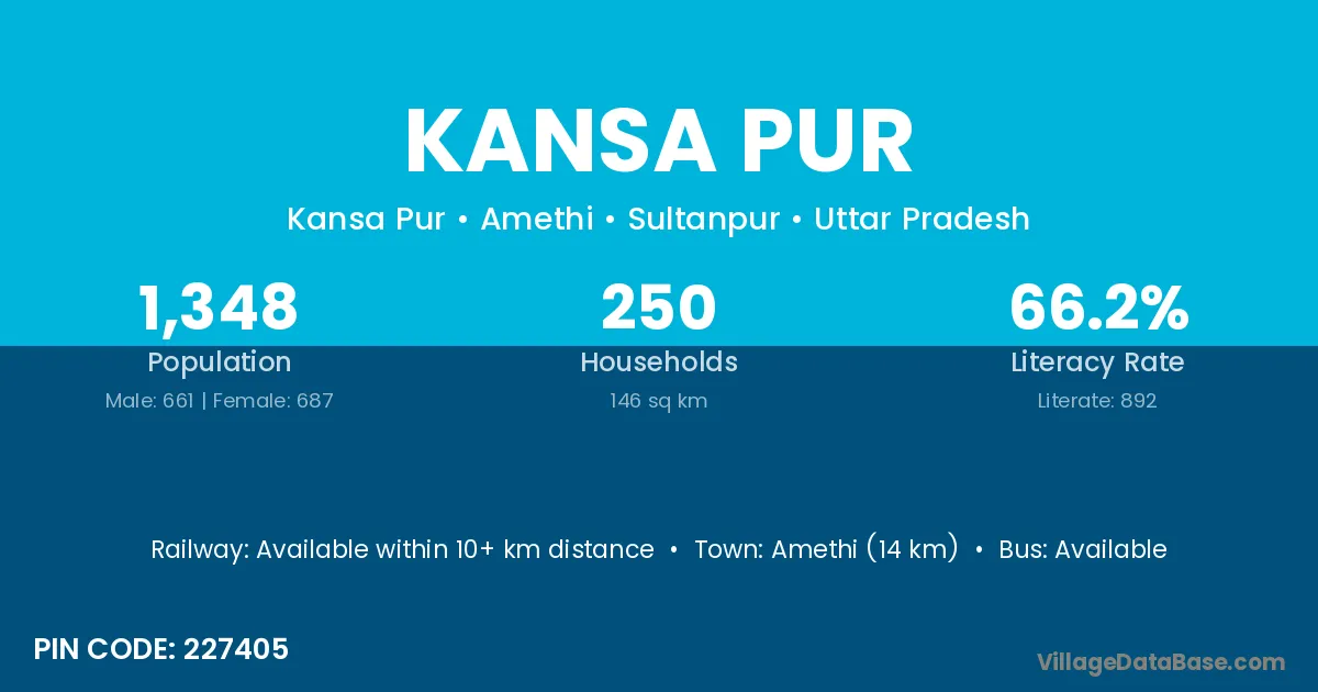 Amethi (14 km) is the nearest town to Kansa Pur village for major economic activities and is located approximately 14 km away.