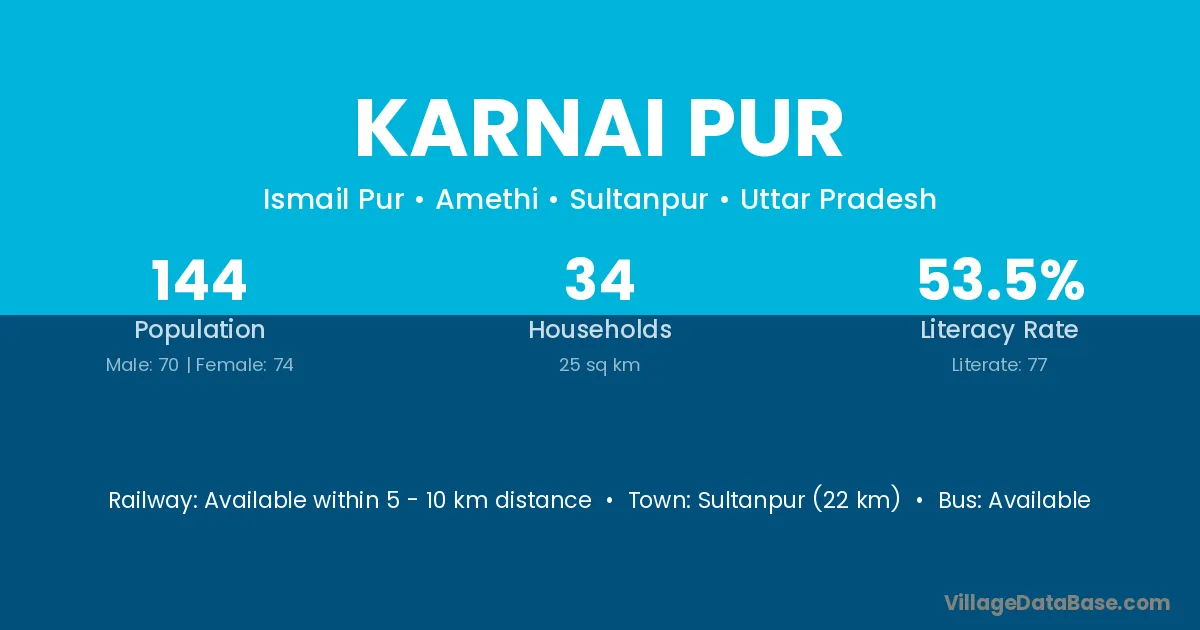Sultanpur (22 km) is the nearest town to Karnai Pur village for major economic activities and is located approximately 22 km away.