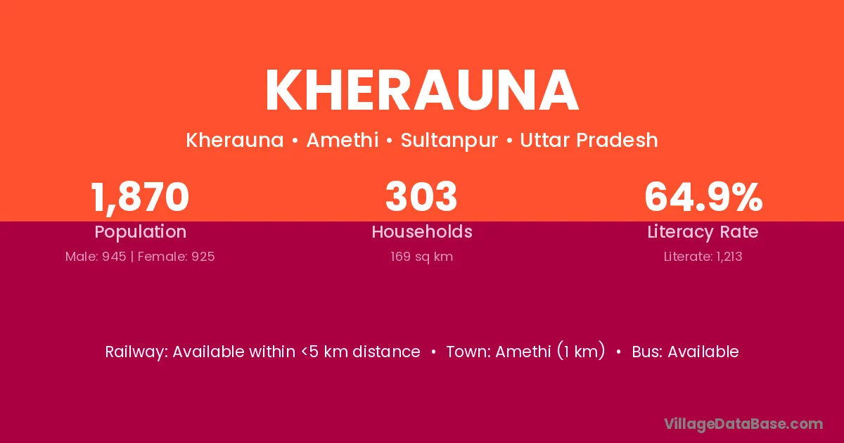 Amethi (1 km) is the nearest town to Kherauna village for major economic activities and is located approximately 1 km away.