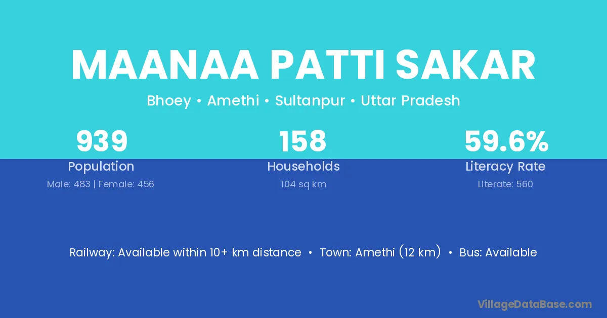 Amethi (12 km) is the nearest town to Maanaa Patti Sakar village for major economic activities and is located approximately 12 km away.