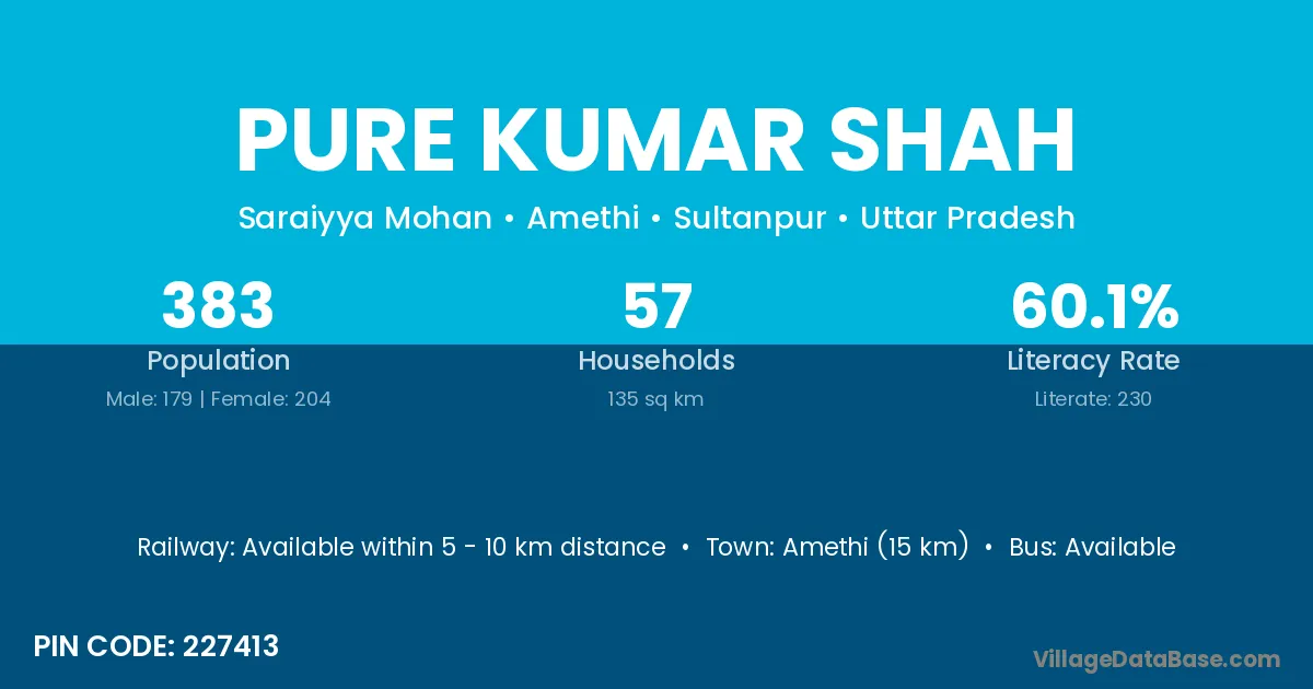 Amethi (15 km) is the nearest town to Pure Kumar Shah village for major economic activities and is located approximately 15 km away.