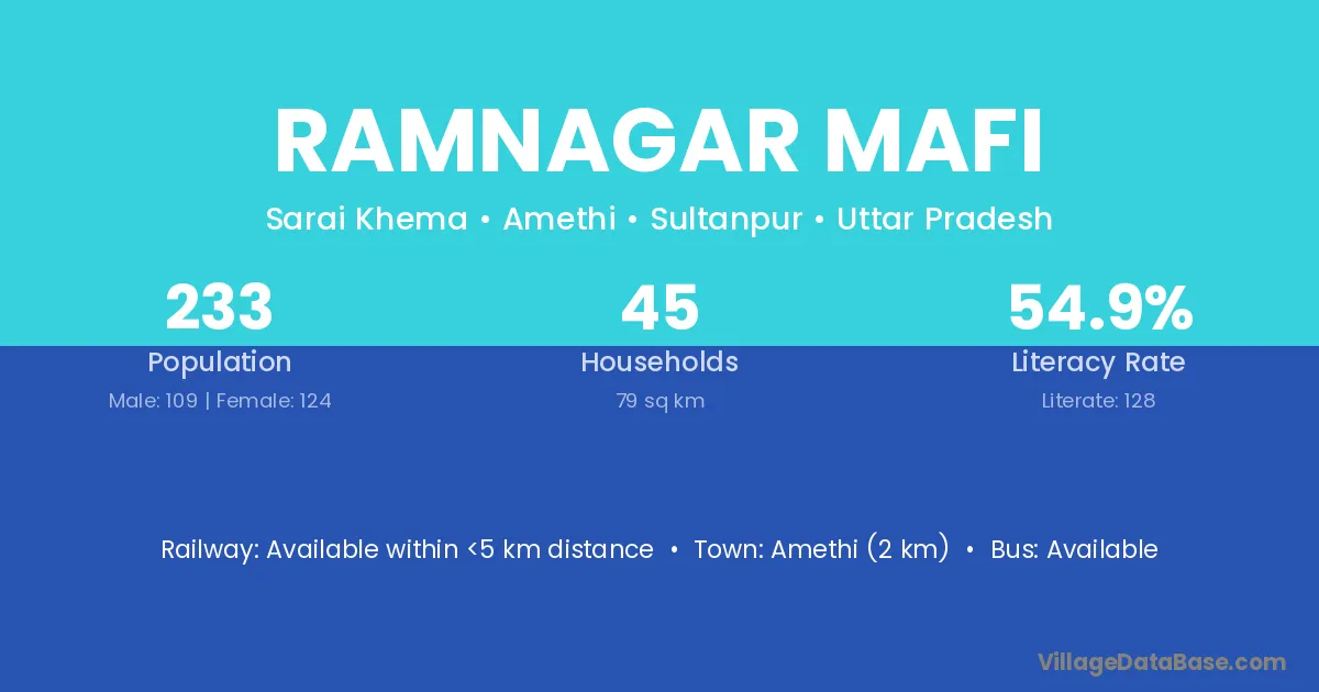 Amethi (2 km) is the nearest town to Ramnagar Mafi village for major economic activities and is located approximately 2 km away.