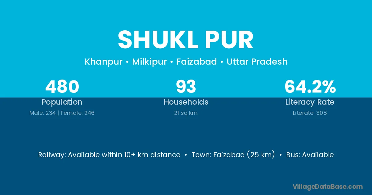 Amethi (11 km) is the nearest town to Shukl Pur village for major economic activities and is located approximately 11 km away.