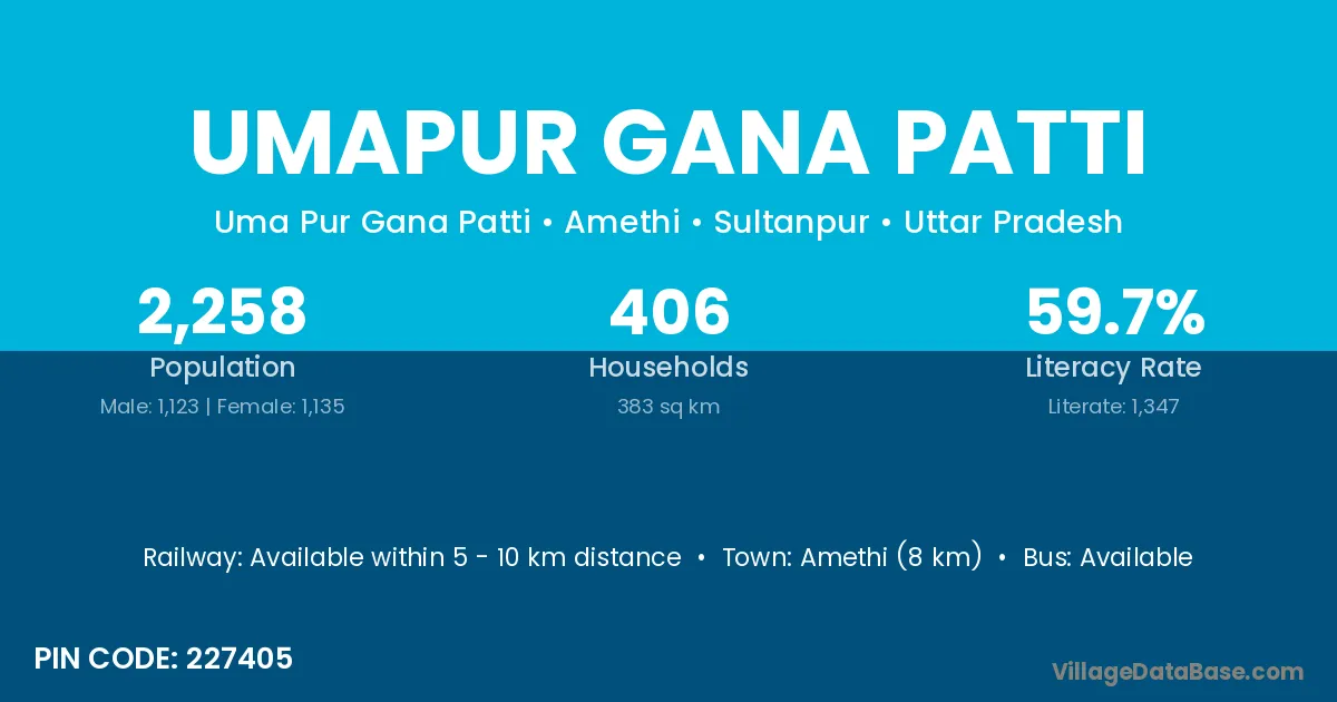 Amethi (8 km) is the nearest town to Umapur Gana Patti village for major economic activities and is located approximately 8 km away.
