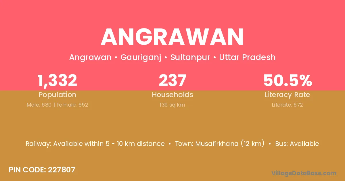 Musafirkhana (12 km) is the nearest town to Angrawan village for major economic activities and is located approximately 12 km away.
