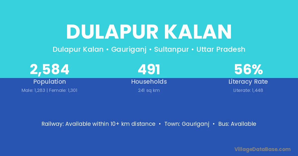 Dulapur Kalan village has a total population of 2,584 people, of which 1,283 are males and 1,301 are females.