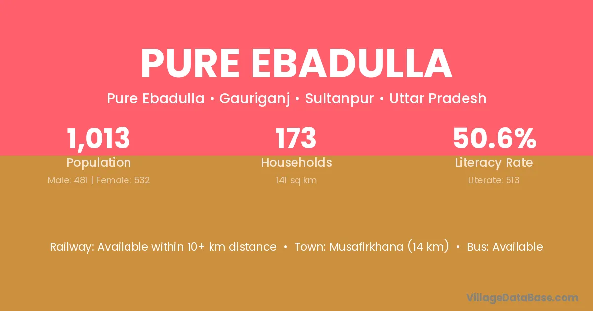 Pure Ebadulla village has a total population of 1,013 people, of which 481 are males and 532 are females.