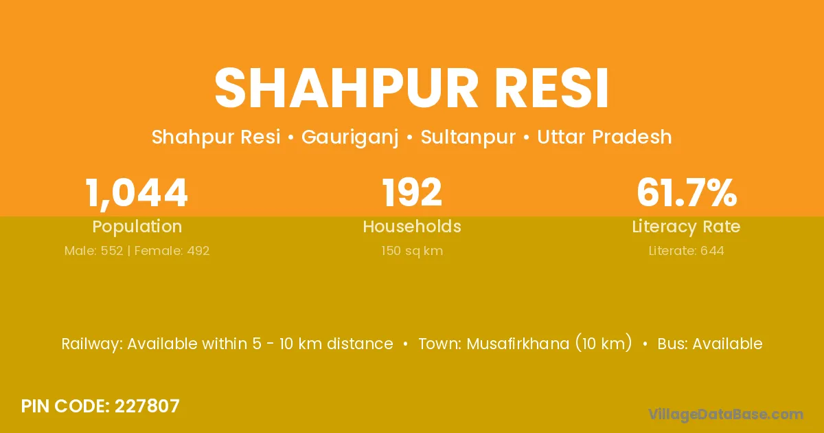 Musafirkhana (10 km) is the nearest town to Shahpur Resi village for major economic activities and is located approximately 10 km away.