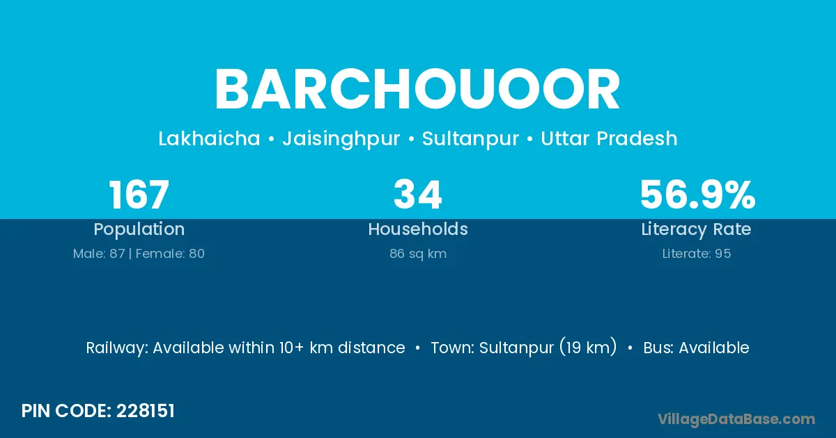 Sultanpur (19 km) is the nearest town to Barchouoor village for major economic activities and is located approximately 19 km away.