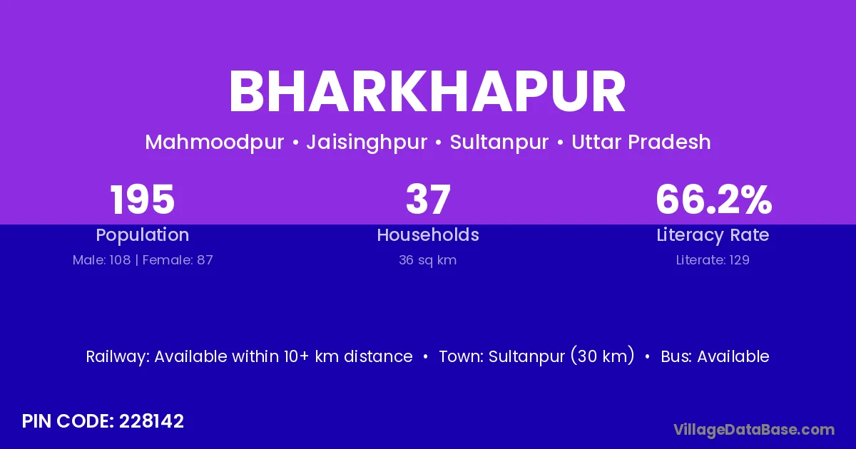 Sultanpur (30 km) is the nearest town to Bharkhapur village for major economic activities and is located approximately 30 km away.