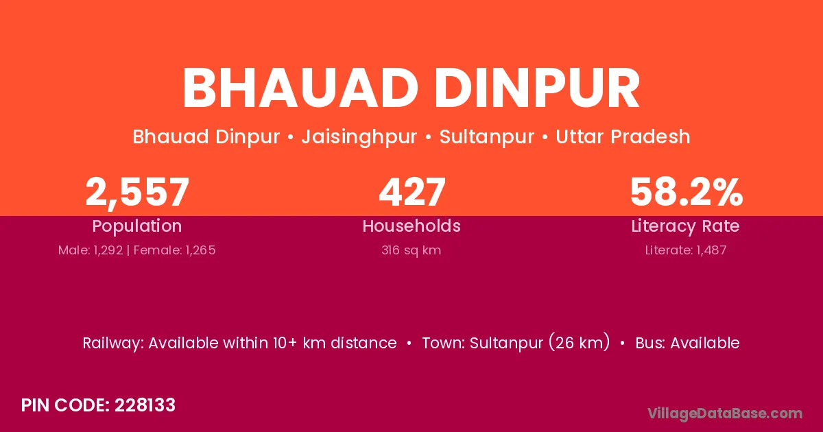Sultanpur (26 km) is the nearest town to Bhauad Dinpur village for major economic activities and is located approximately 26 km away.