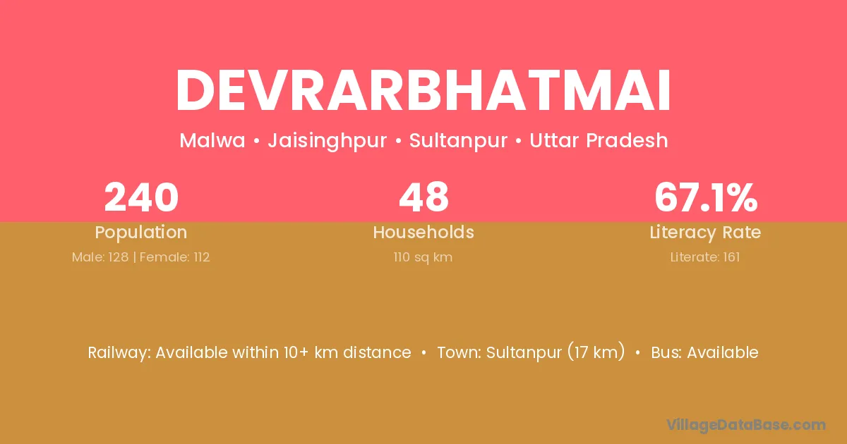 Sultanpur (17 km) is the nearest town to Devrarbhatmai village for major economic activities and is located approximately 17 km away.
