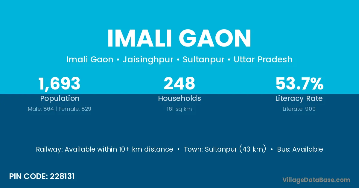 Sultanpur (43 km) is the nearest town to Imali Gaon village for major economic activities and is located approximately 43 km away.