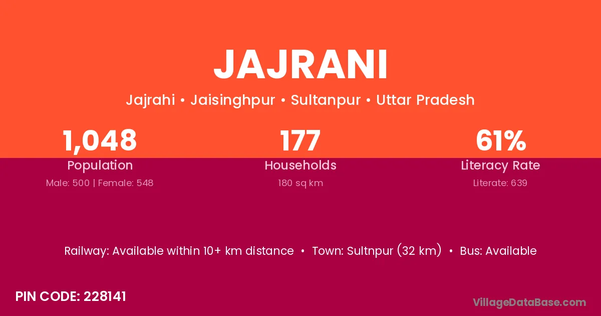Sultnpur (32 km) is the nearest town to Jajrani village for major economic activities and is located approximately 32 km away.