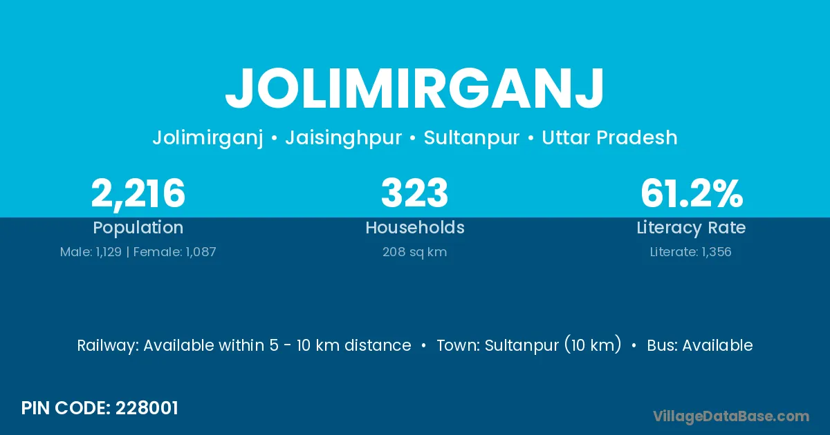 Sultanpur (10 km) is the nearest town to Jolimirganj village for major economic activities and is located approximately 10 km away.