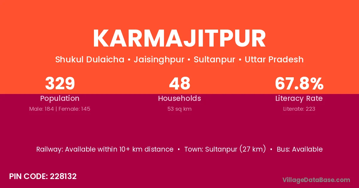 Sultanpur (27 km) is the nearest town to Karmajitpur village for major economic activities and is located approximately 27 km away.