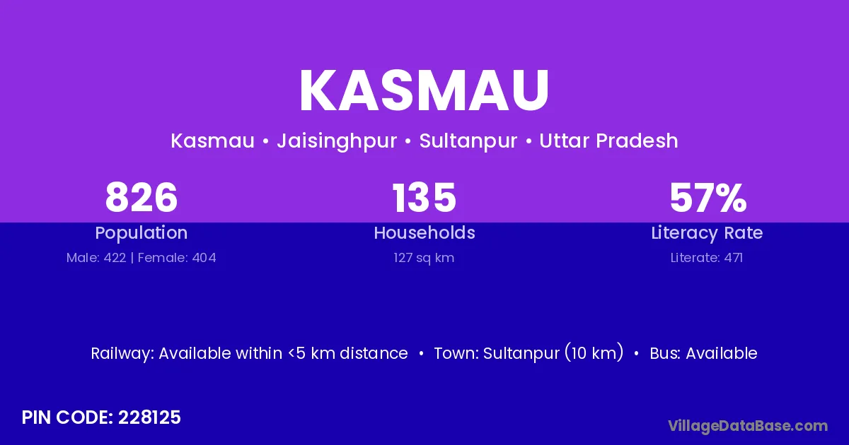 Sultanpur (10 km) is the nearest town to Kasmau village for major economic activities and is located approximately 10 km away.