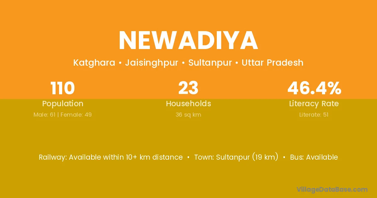 Sultanpur (19 km) is the nearest town to Newadiya village for major economic activities and is located approximately 19 km away.