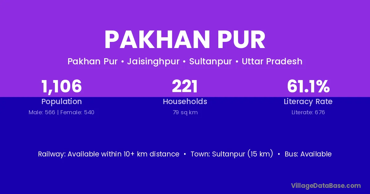 Sultanpur (15 km) is the nearest town to Pakhan Pur village for major economic activities and is located approximately 15 km away.