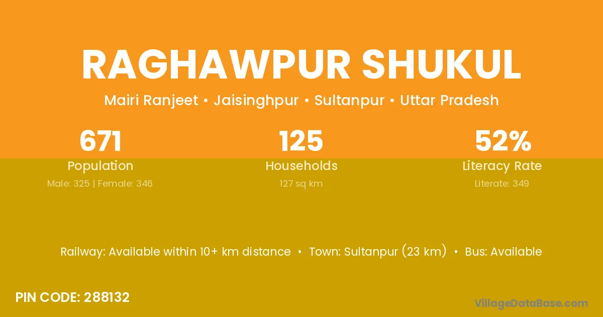 Sultanpur (23 km) is the nearest town to Raghawpur Shukul village for major economic activities and is located approximately 23 km away.