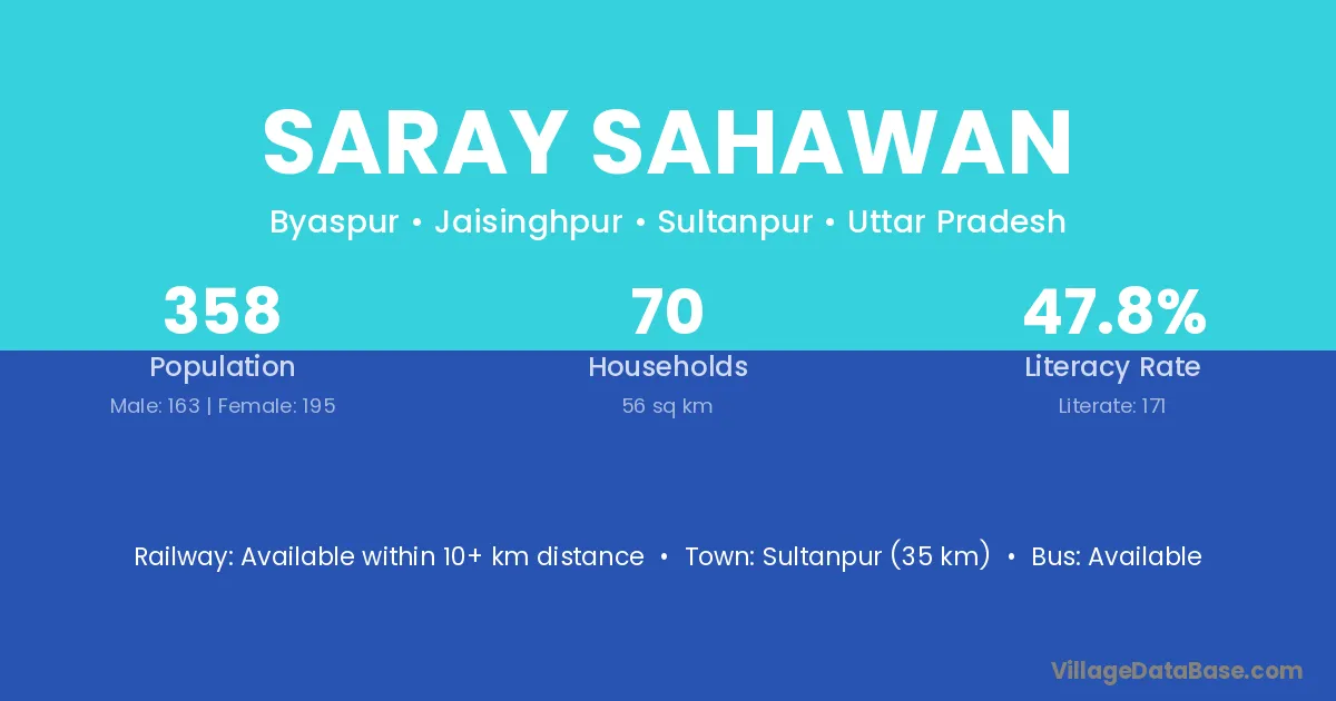 Sultanpur (35 km) is the nearest town to Saray Sahawan village for major economic activities and is located approximately 35 km away.