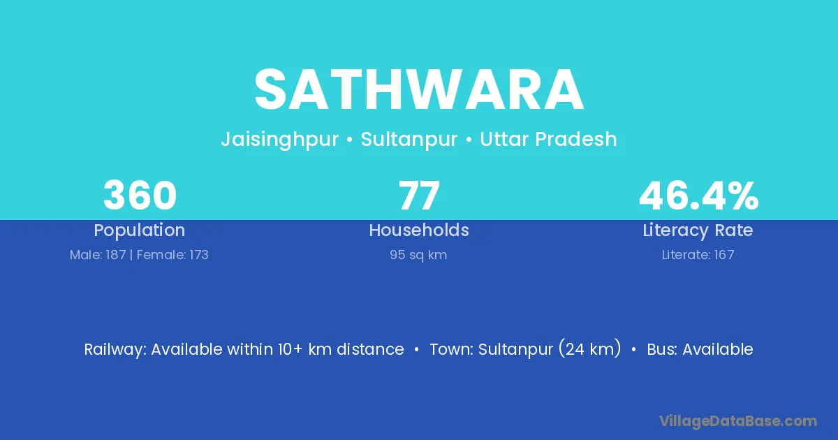 Sultanpur (24 km) is the nearest town to Sathwara village for major economic activities and is located approximately 24 km away.