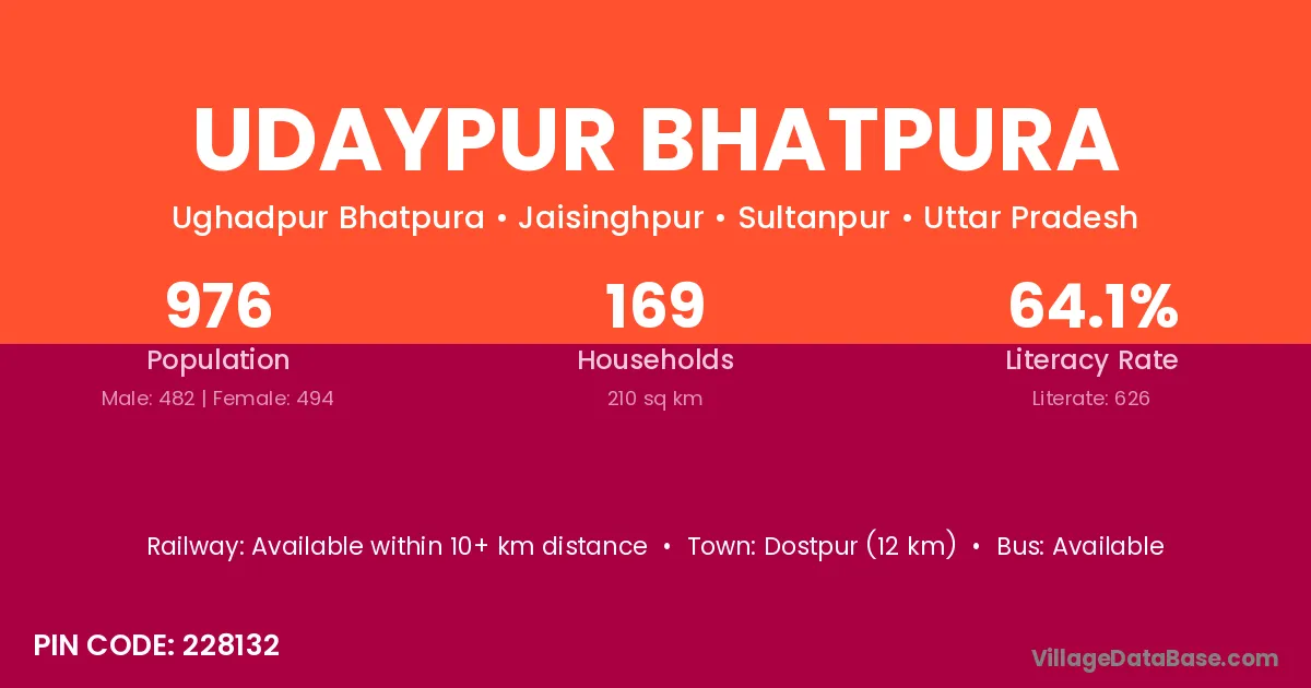 Udaypur Bhatpura village has a total population of 976 people, of which 482 are males and 494 are females.