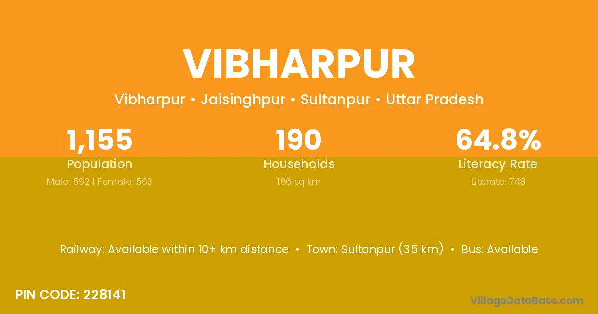 Sultanpur (35 km) is the nearest town to Vibharpur village for major economic activities and is located approximately 35 km away.