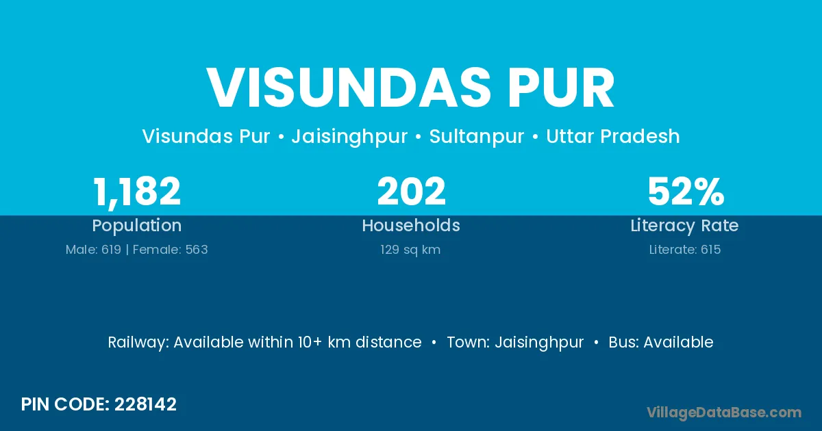 Visundas Pur village has a total population of 1,182 people, of which 619 are males and 563 are females.