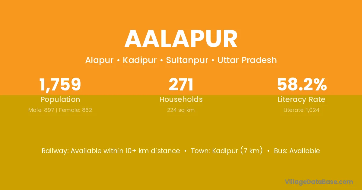 Kadipur (7 km) is the nearest town to Aalapur village for major economic activities and is located approximately 7 km away.
