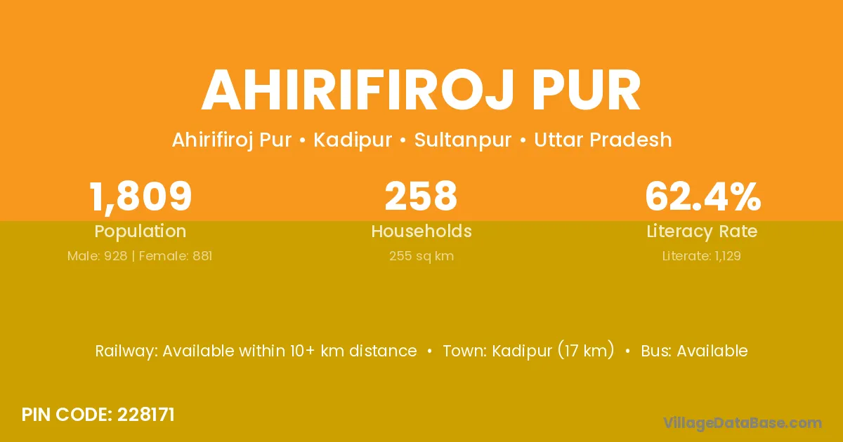 Kadipur (17 km) is the nearest town to Ahirifiroj Pur village for major economic activities and is located approximately 17 km away.
