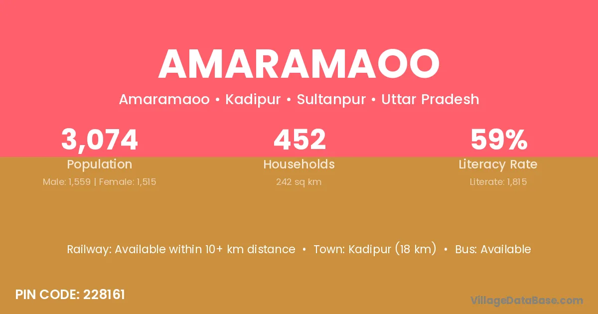 Kadipur (18 km) is the nearest town to Amaramaoo village for major economic activities and is located approximately 18 km away.