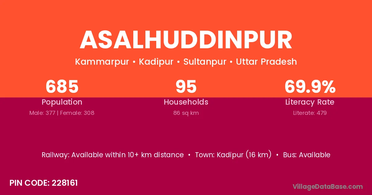 Kadipur (16 km) is the nearest town to Asalhuddinpur village for major economic activities and is located approximately 16 km away.