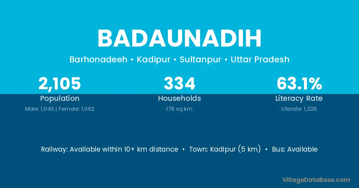 Kadipur (5 km) is the nearest town to Badaunadih village for major economic activities and is located approximately 5 km away.