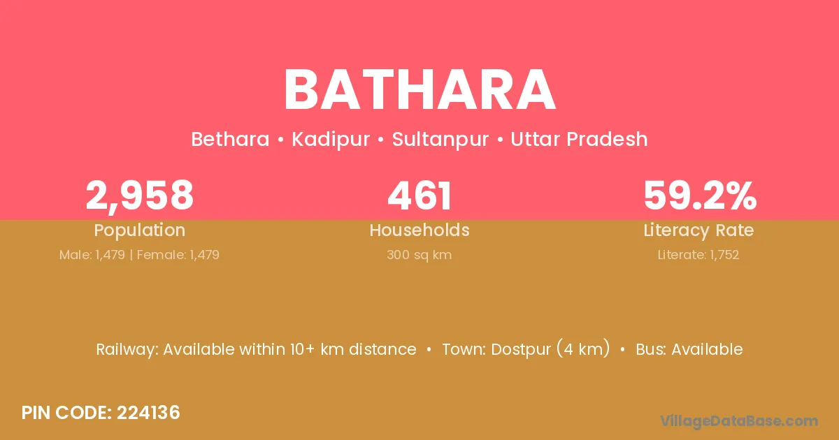 Dostpur (4 km) is the nearest town to Bathara village for major economic activities and is located approximately 4 km away.
