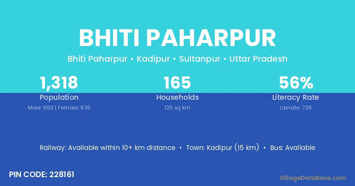 Kadipur (15 km) is the nearest town to Bhiti Paharpur village for major economic activities and is located approximately 15 km away.