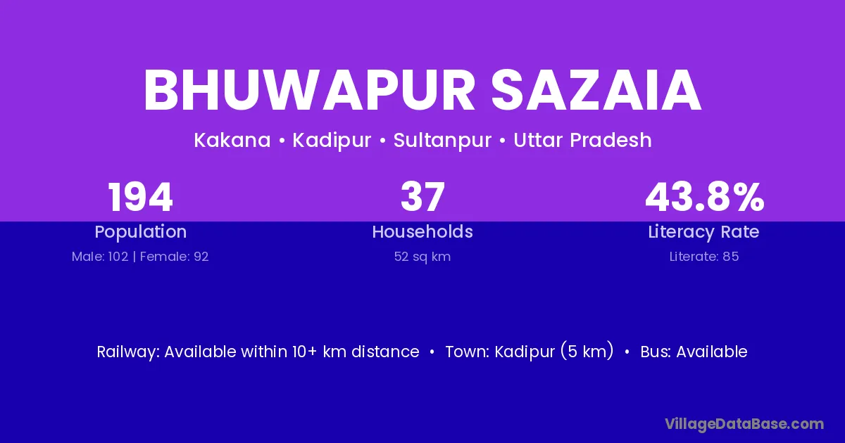 Bhuwapur Sazaia village has a total population of 194 people, of which 102 are males and 92 are females.