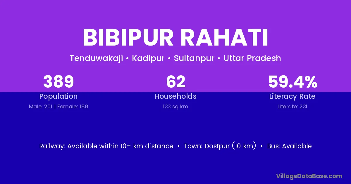 Bibipur Rahati village has a total population of 389 people, of which 201 are males and 188 are females.