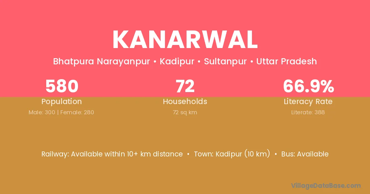 Kadipur (10 km) is the nearest town to Kanarwal village for major economic activities and is located approximately 10 km away.