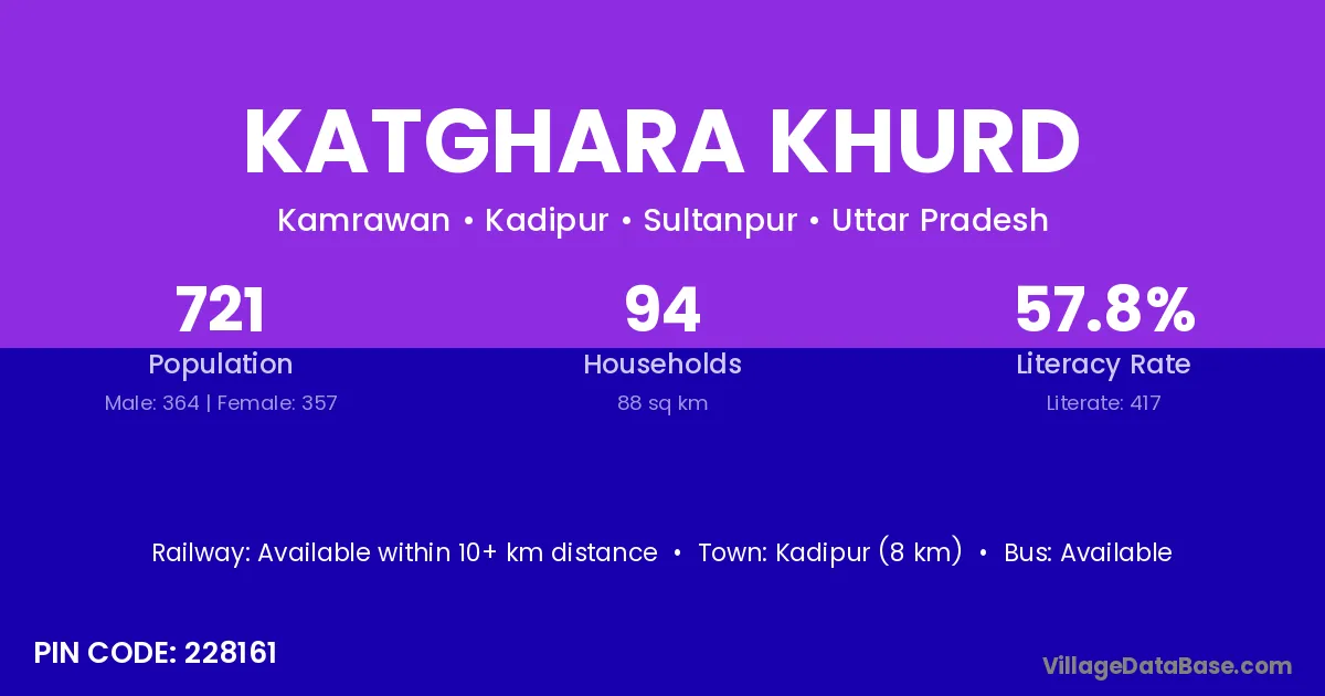 Kadipur (8 km) is the nearest town to Katghara Khurd village for major economic activities and is located approximately 8 km away.