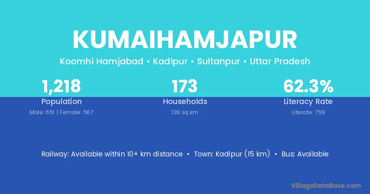 Kadipur (15 km) is the nearest town to Kumaihamjapur village for major economic activities and is located approximately 15 km away.